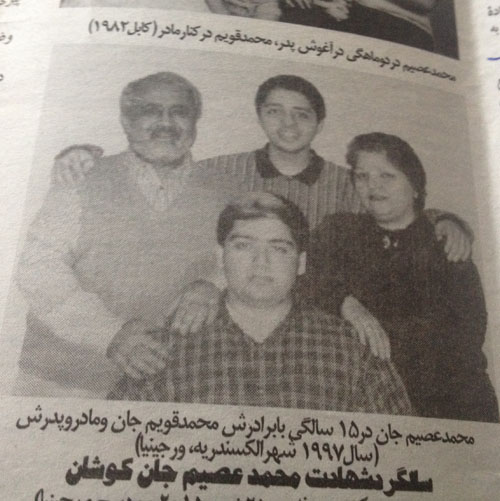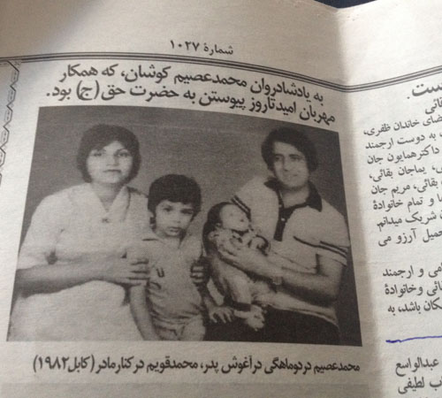 در ستون دوم هفته نامه اميد ( 1027) سالگرد شادروان محمد عصيم جان کوشان فرزند عزيز و همکار پرکار اميد و نور جشم خانواده کوشان در دو تصوير زيبای خانوادگی جلب توجه می کند ، که بدين مناسبت ، خاندان بقايی مراتب همدردی و غمشريکی شان را به برادر عزيز و ارجمند کوشان و خانواده داغ ديده اش تقديم ميدارند. سلامتی بازماندگان را از آفريدگار جهان بدست دعا التماس می نمايد و روح او را در جوار رحمت الهی می خواهد.