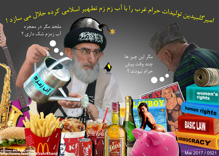 امــیرگلبــیدین راکتــیار تولیــدات مــادی و معنــوی دیار کفــر را با آب زمــزم تطهــیر اســلامی کــرده به حــلال تبــدیل میکــند.