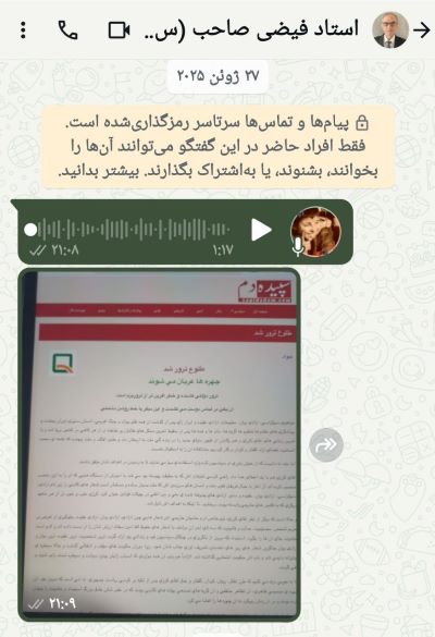 سلام رفیق فیضی صاحب عزیز، ان‌شاءالله که سلامت و جور و به خیر باشین. صحت تان خوب اس؟ طرفای تان خیریتی اس؟ خانه‌واده‌، کله‌گی خوب هستن؟ مه عثمان نجیب هستم. تلفنای مام تغییر کده بود دگه، گر چه مه به شما نمری مام روان کده بودم،‌ خو‌ نه می‌فامم داشتین یا نه داشتین؟خوب هستین ان‌شاءالله به خیر هستین؟ ان‌شاءالله که همه چیز خوب باشه و صحت تان هم خوب باشه. یک پرسان داشتم رفیق فیضی عزیز. مه ده زمانی که ده افغانستان بودم، به شما به نام مستعار جواد، مقالاته روان می‌کدم. باز او مقالاته نشر می کدین، مه می دیدم. یک مقالی بسیار مهم سیاسی بود، هر چی که حالی ده سپیده‌دم می‌پالم نه میه‌فم، چند تای شه یافتم، طلوع ترور شد و دگه‌ و‌ دگه از ضرار و ای یاره، اما، همی بخش سیاسی از ای ره دگه هر چی که پالیدم دگه نوشتا فهرست نیسته، ده جمع نویسنده‌ها نام جواد نیس، مه به نام جواد روان می‌کدم. چطو می‌تانم به می دست‌رسی پیدا کنم صایب؟ ان‌شاءالله که سلامت باشین، منتظر معلومات تان استم. »