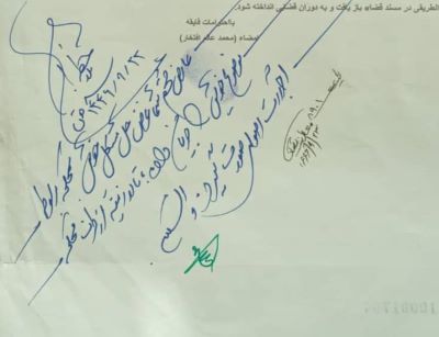 ظاهراً معلوم می شود که محکمه حتی بر وثیقه صادره و حصر وراثت تبیین کرده خودش شک و تردید دارد و با جعل شهادت مضاعف این افراد؛ گویا آن را مؤثق تر می گرداند!